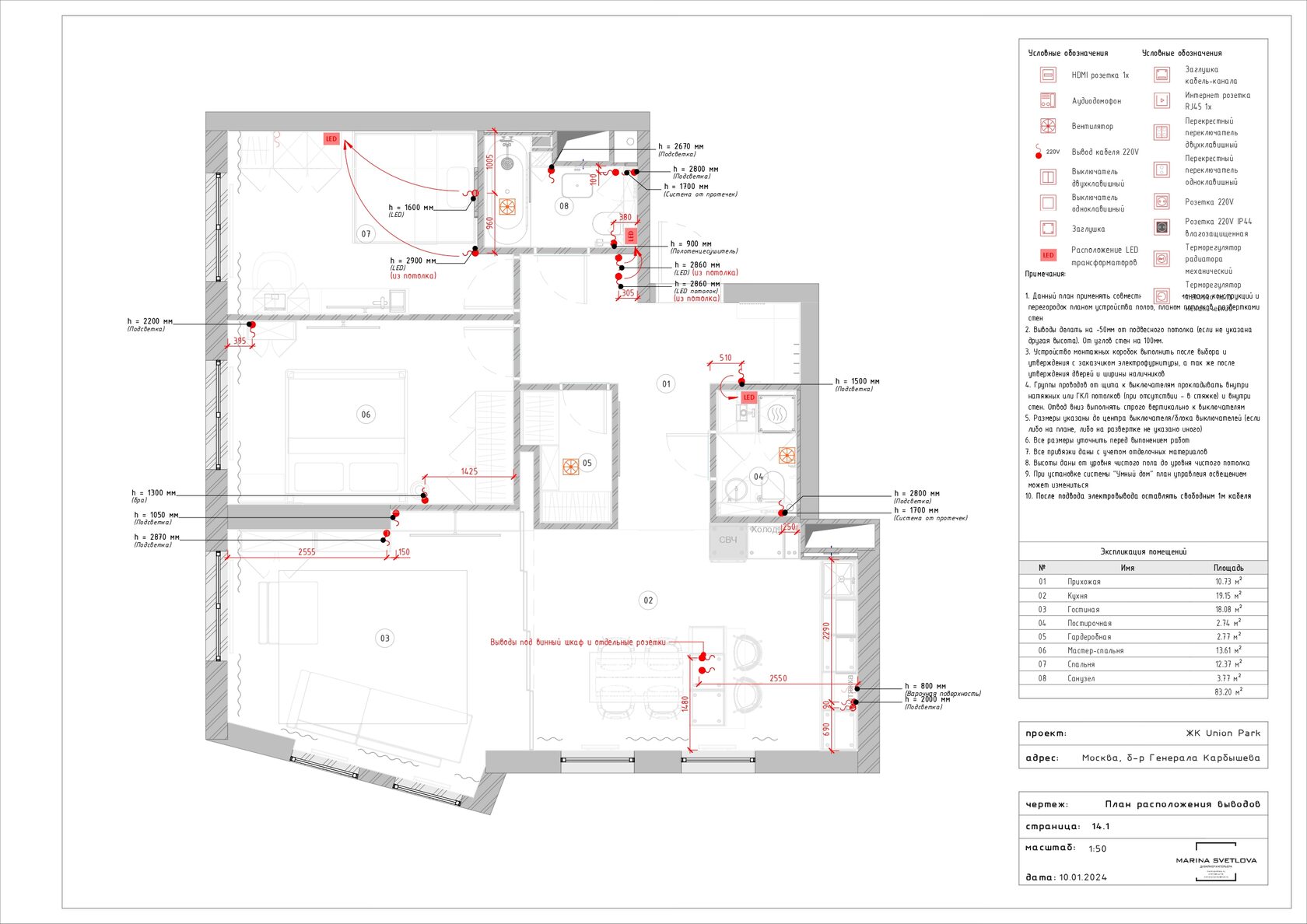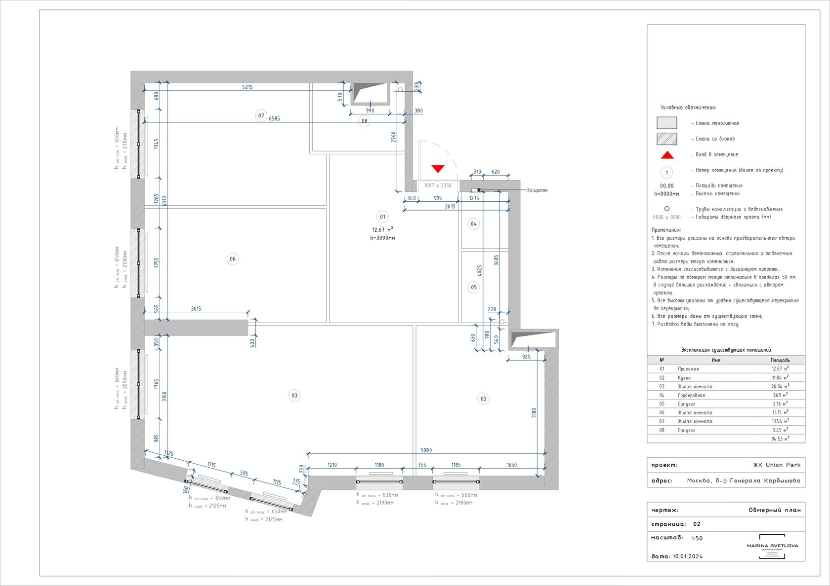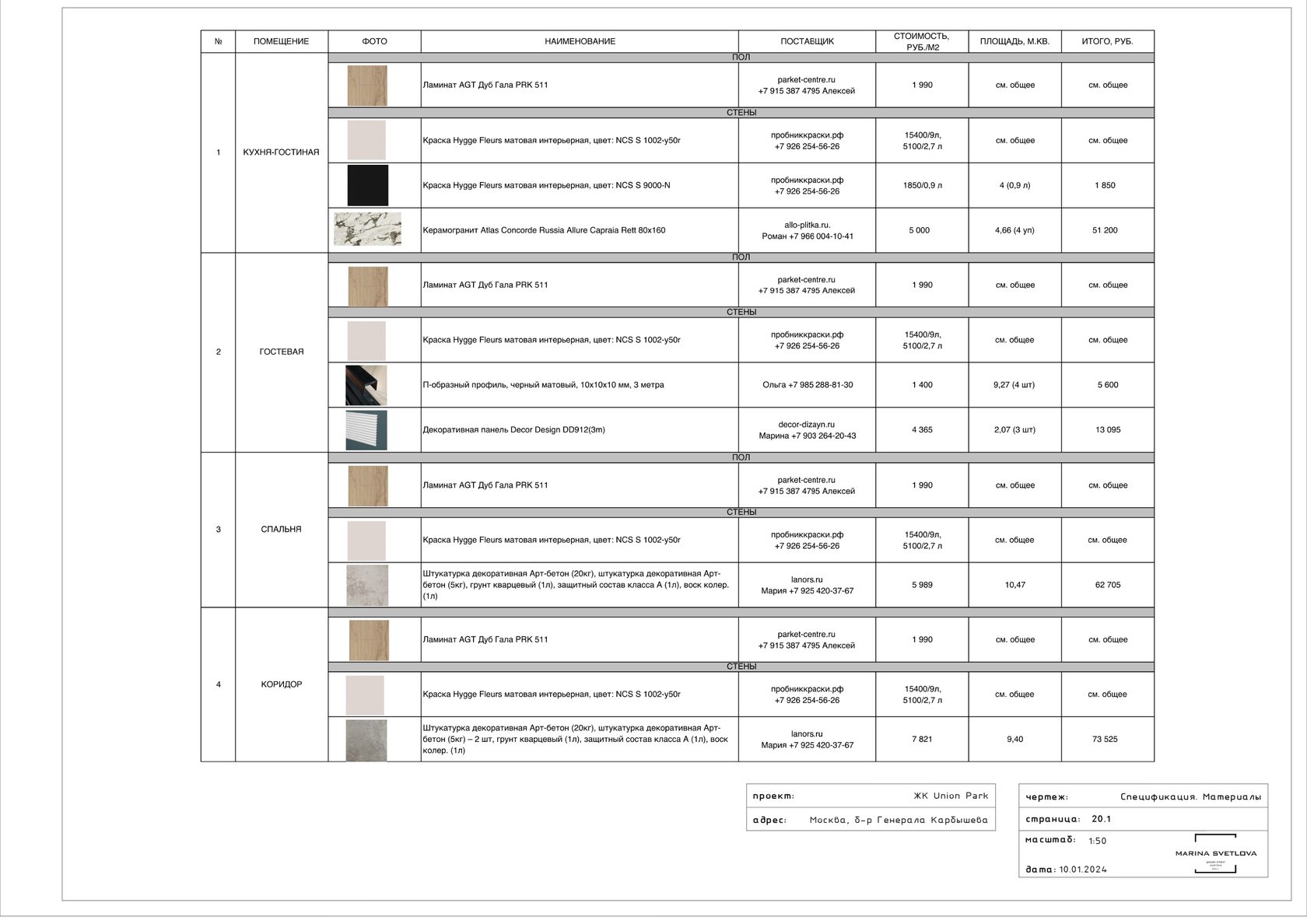 - Спецификация чистовых материалов с указанием артикулов и объемов.